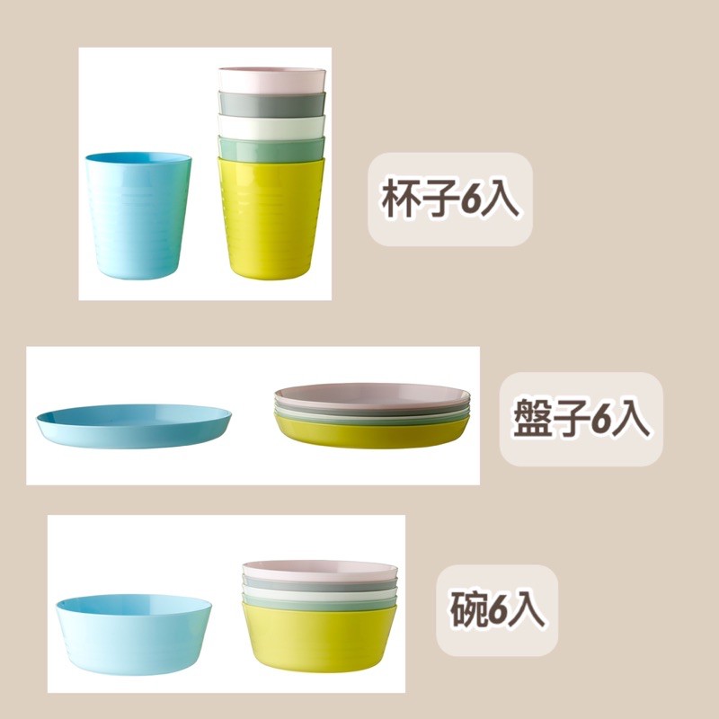 IKEA🇸🇪 兒童 餐具6件1組 繽紛 餐具 塑膠碗 杯子 盤子 刀叉匙 pp材質 耐熱100度