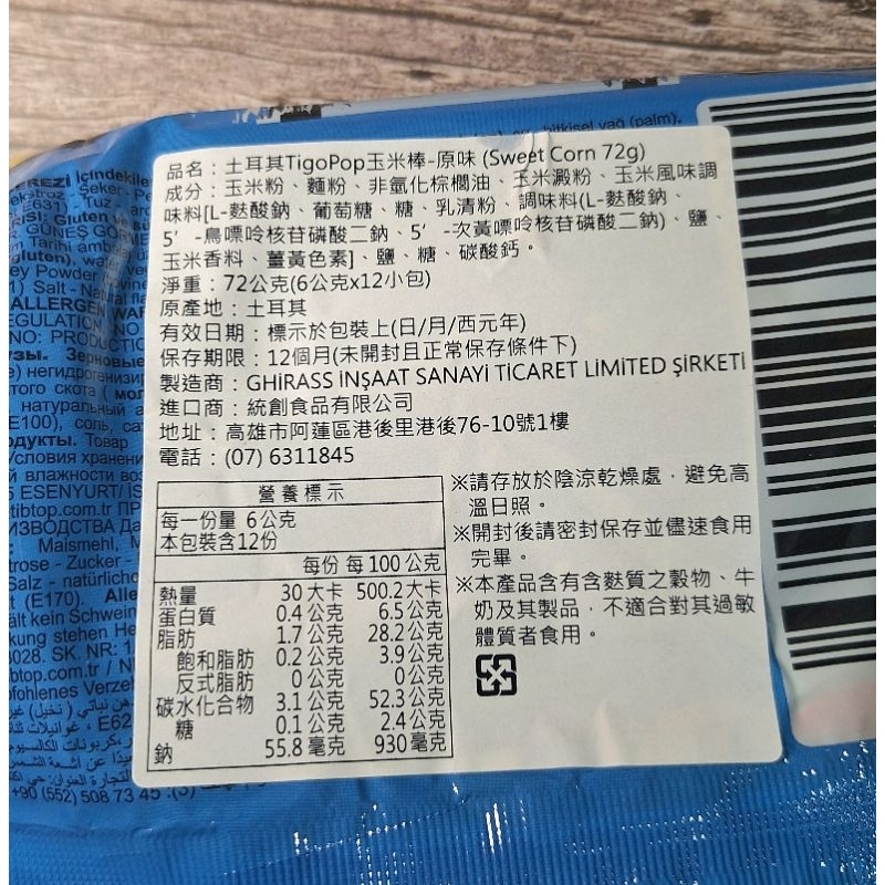 ☆零食趴趴走☆✔️即期出清 快速出貨 🌽 土耳其 Tigo pop玉米棒 12入 (原味/烤雞風味) 72g 玉米棒
