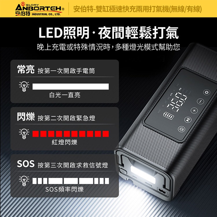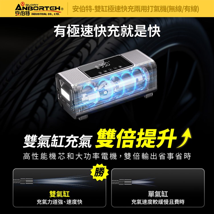 【安伯特】雙缸極速快充兩用打氣機(無線/有線) 國家認證 一年保固 (充氣機 輪胎 胎壓檢測)