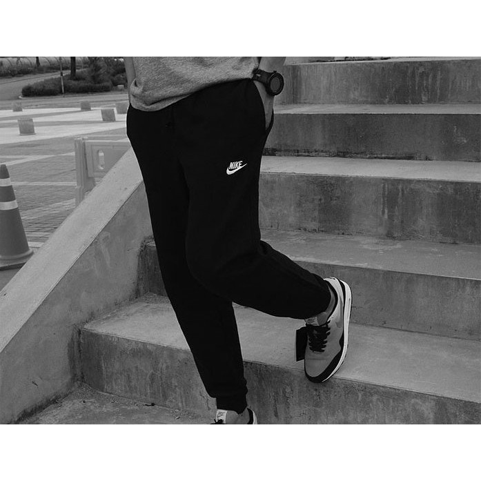 Nike AW77 CUFF PANT 黑白 縮口 刺繡 長褲 棉褲 薄款 616577-010【逢甲 FUZZY】