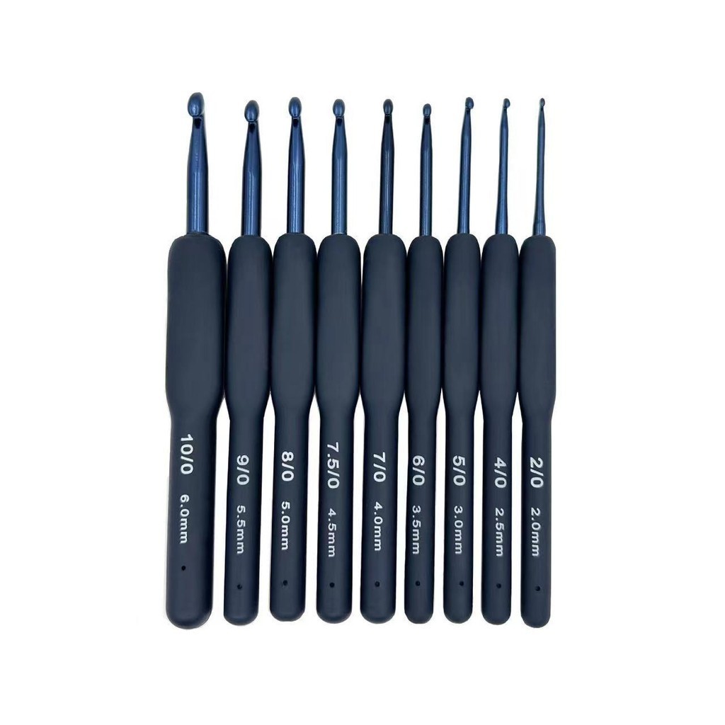 【台灣出貨 藍色專業鉤針 2-6mm多規格可選擇】新品藍色軟柄鉤針套裝 藍色鉤頭鋁鉤針9支藍色柄鉤針套裝