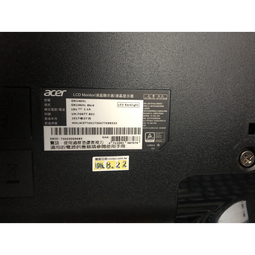 ACER GN246HL B 24型 顯示器 螢幕 144hz 1ms 電競 24吋 螢幕 宏碁 電競螢幕 G-SYNC