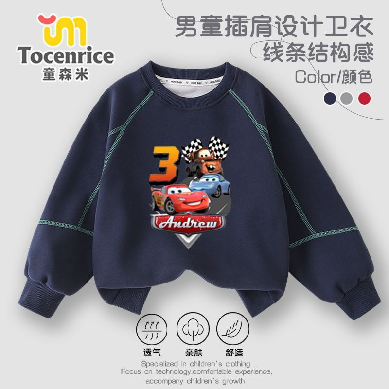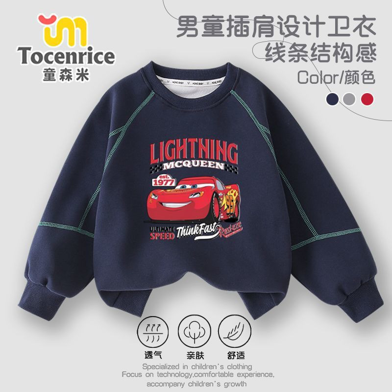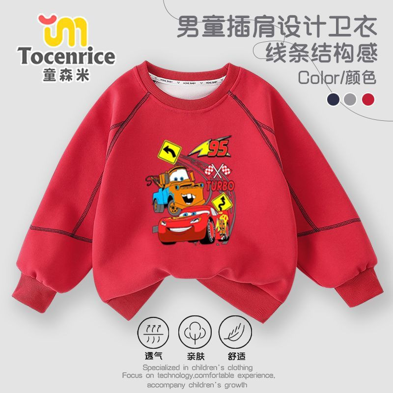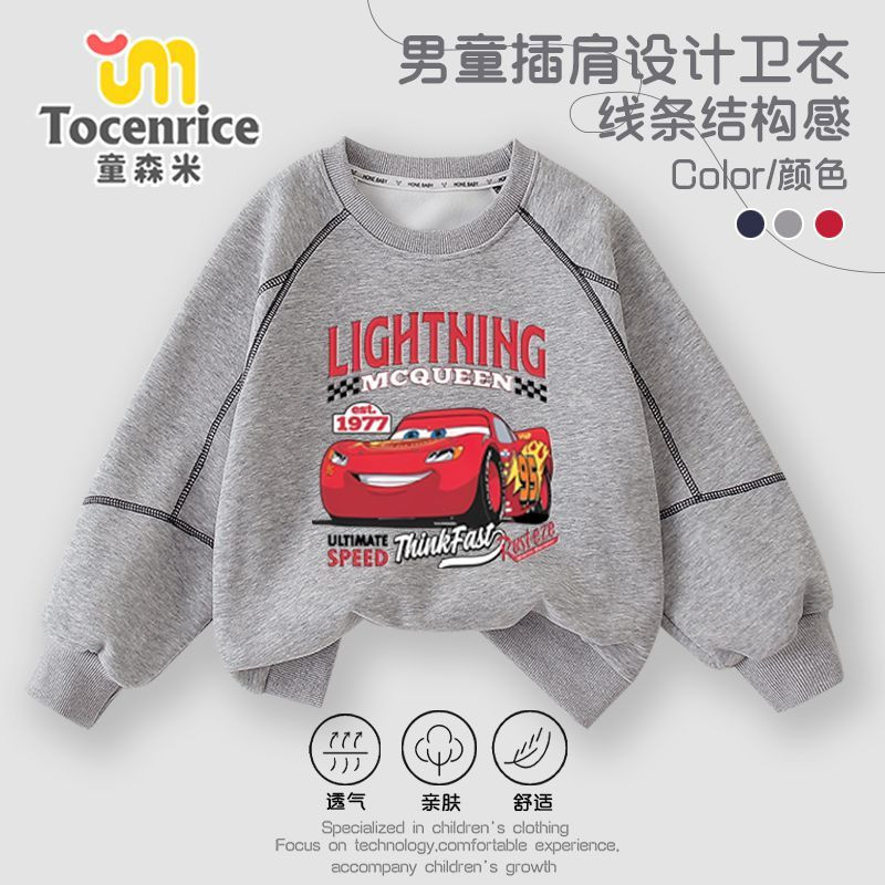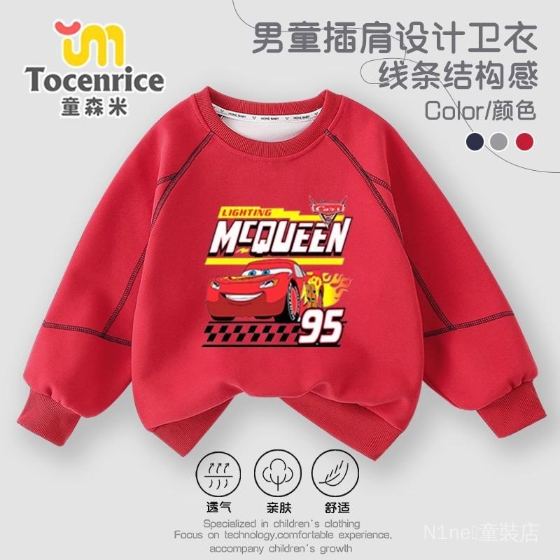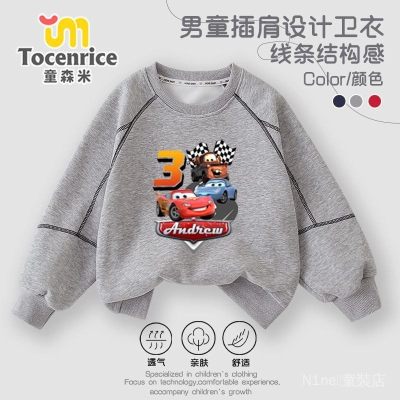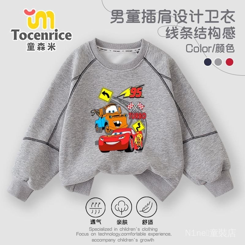 【麥崑】兒童卡通衛衣 秋季 2025 衣服 新品 動漫衛衣汽車 麥崑潮 閃電 卡通長袖外套 圓領賽車總動員