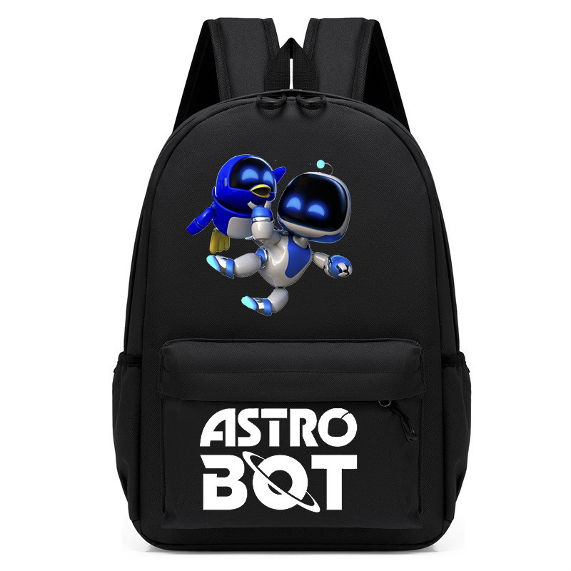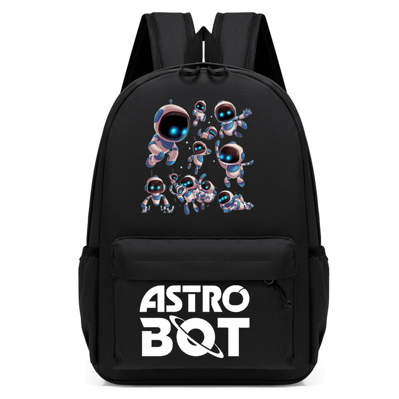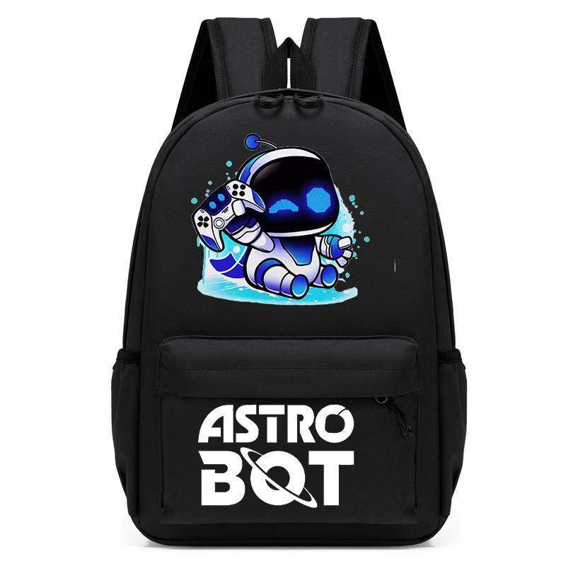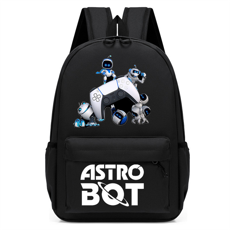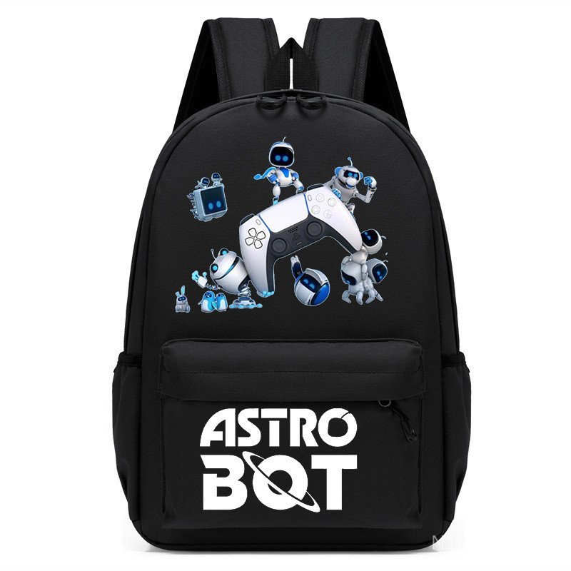 太空機器人Astro Bot印花卡通幼兒園 兒童書包 中兒童 黑色 男孩背包 OQMF