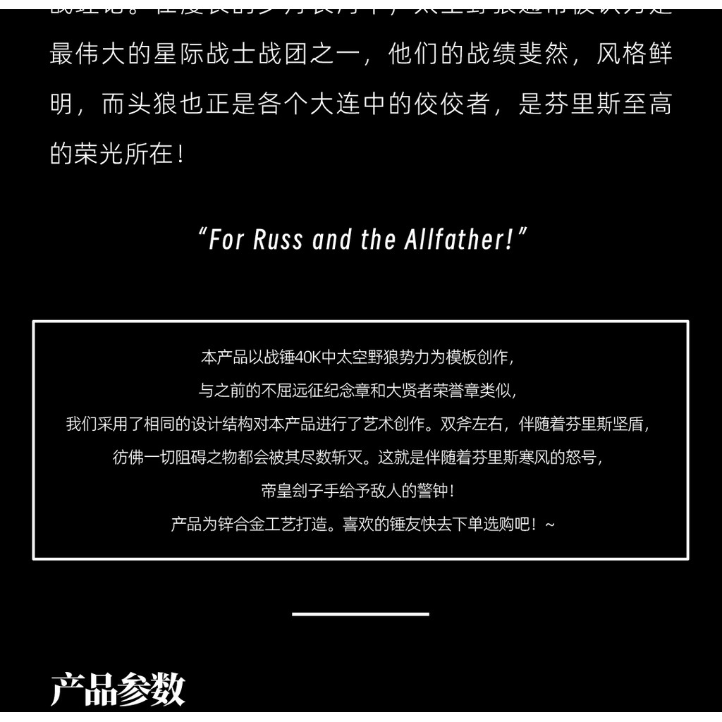 Starforged星辰鑄造 戰錘40K周邊芬里斯頭狼榮譽徽章太空野狼胸針