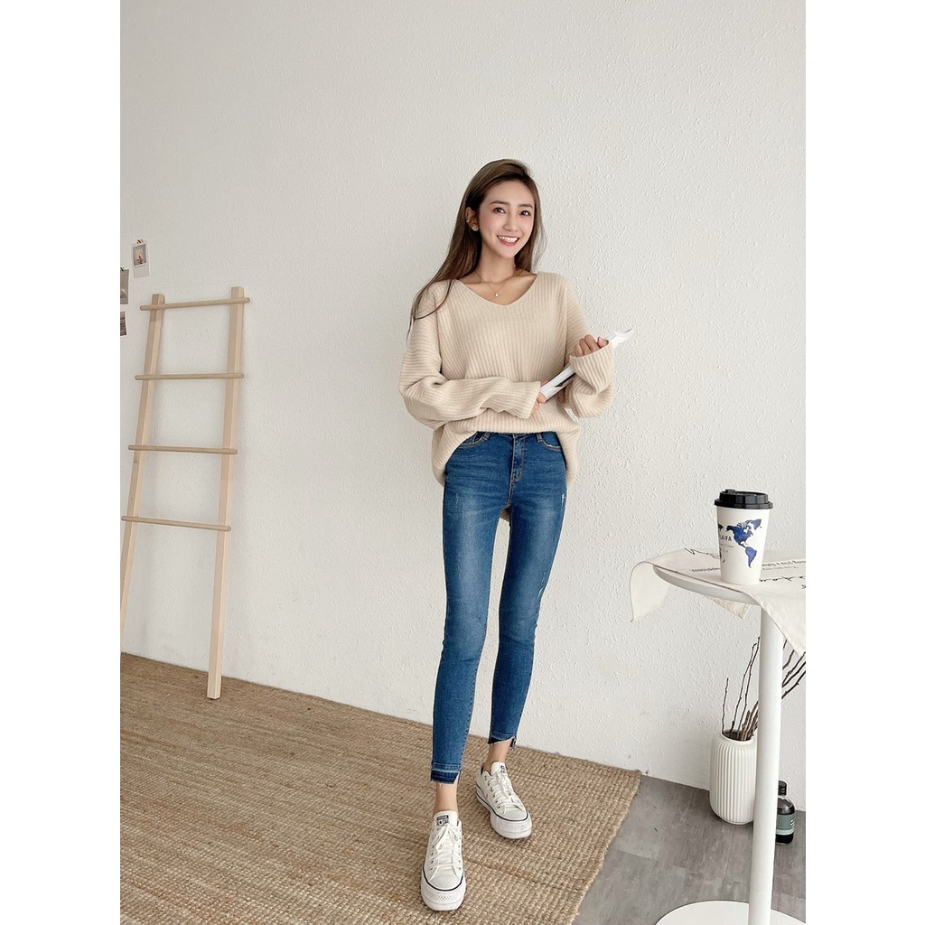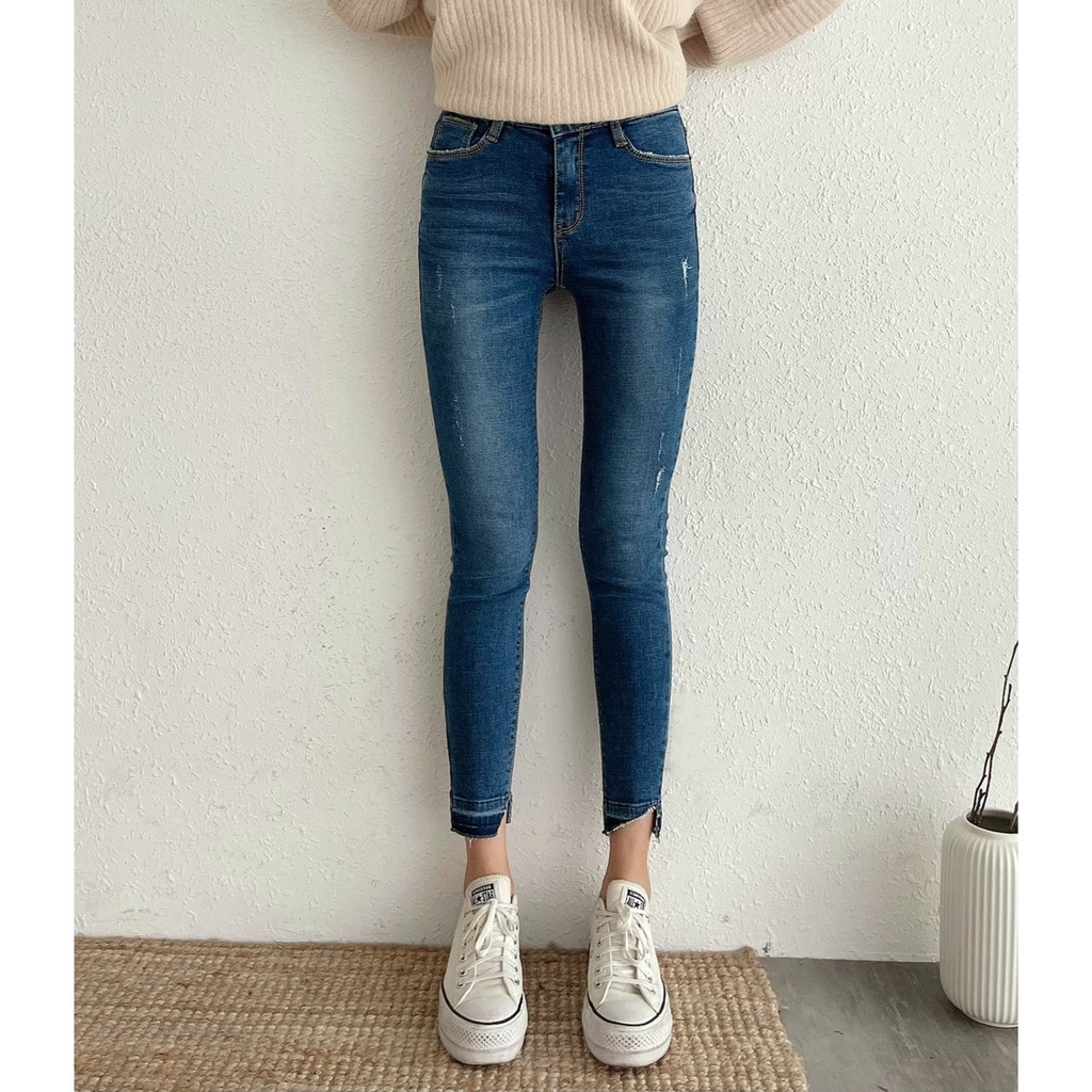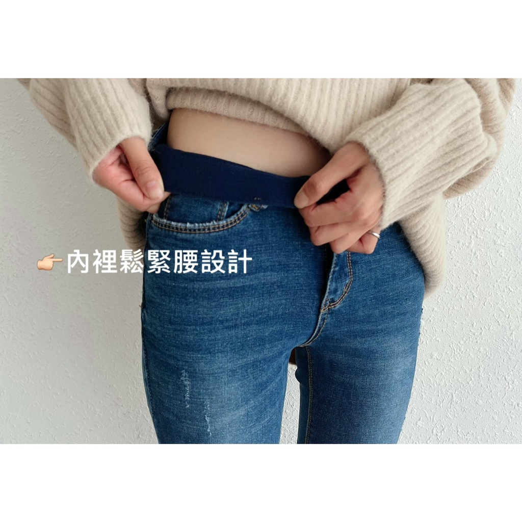 🔥10.27直播新品]💥褲腳有亮點]🇰🇷正韓中高腰內鬆緊腰超彈顯瘦褲腳漸層合身牛仔褲(S-3XL)