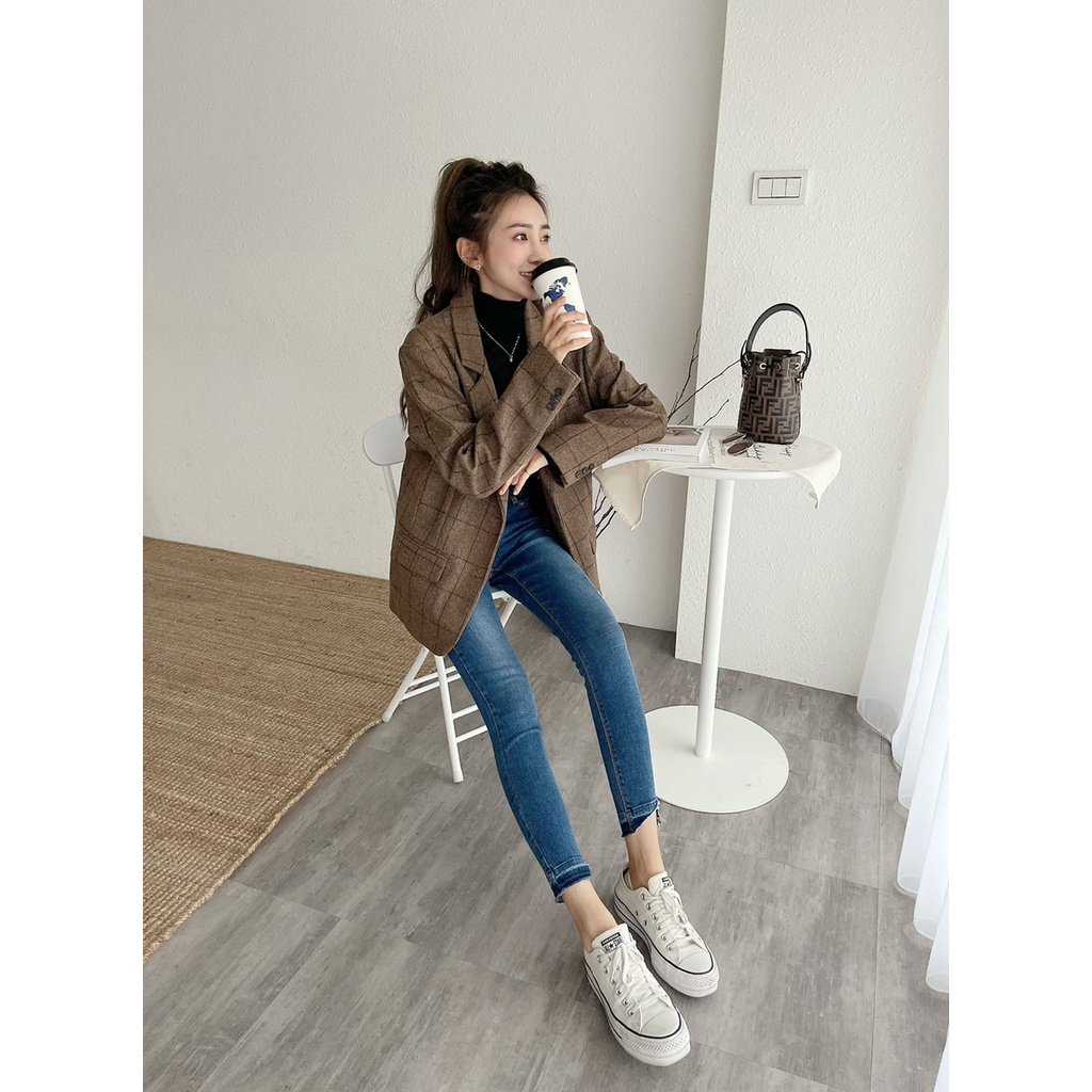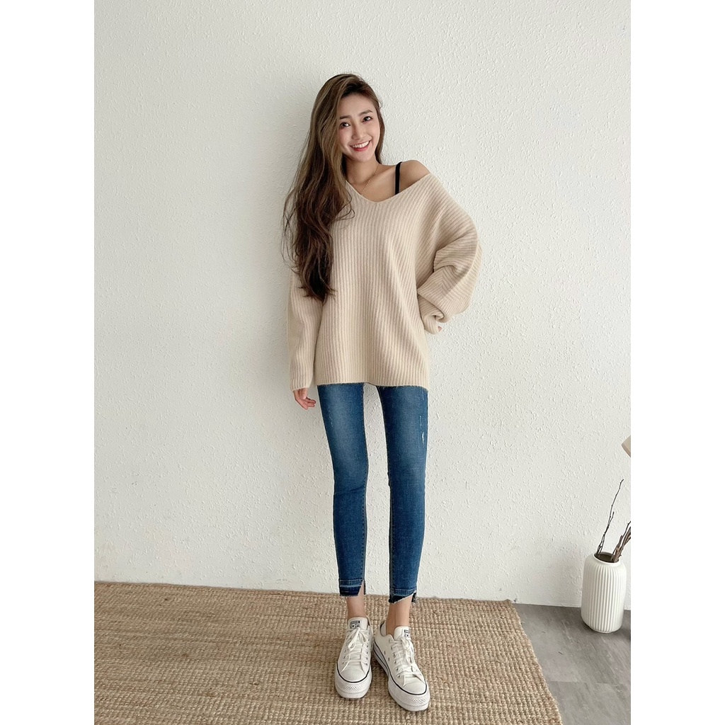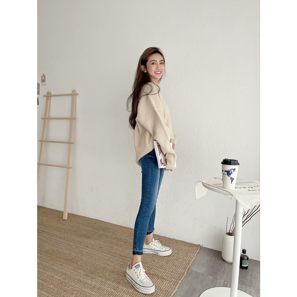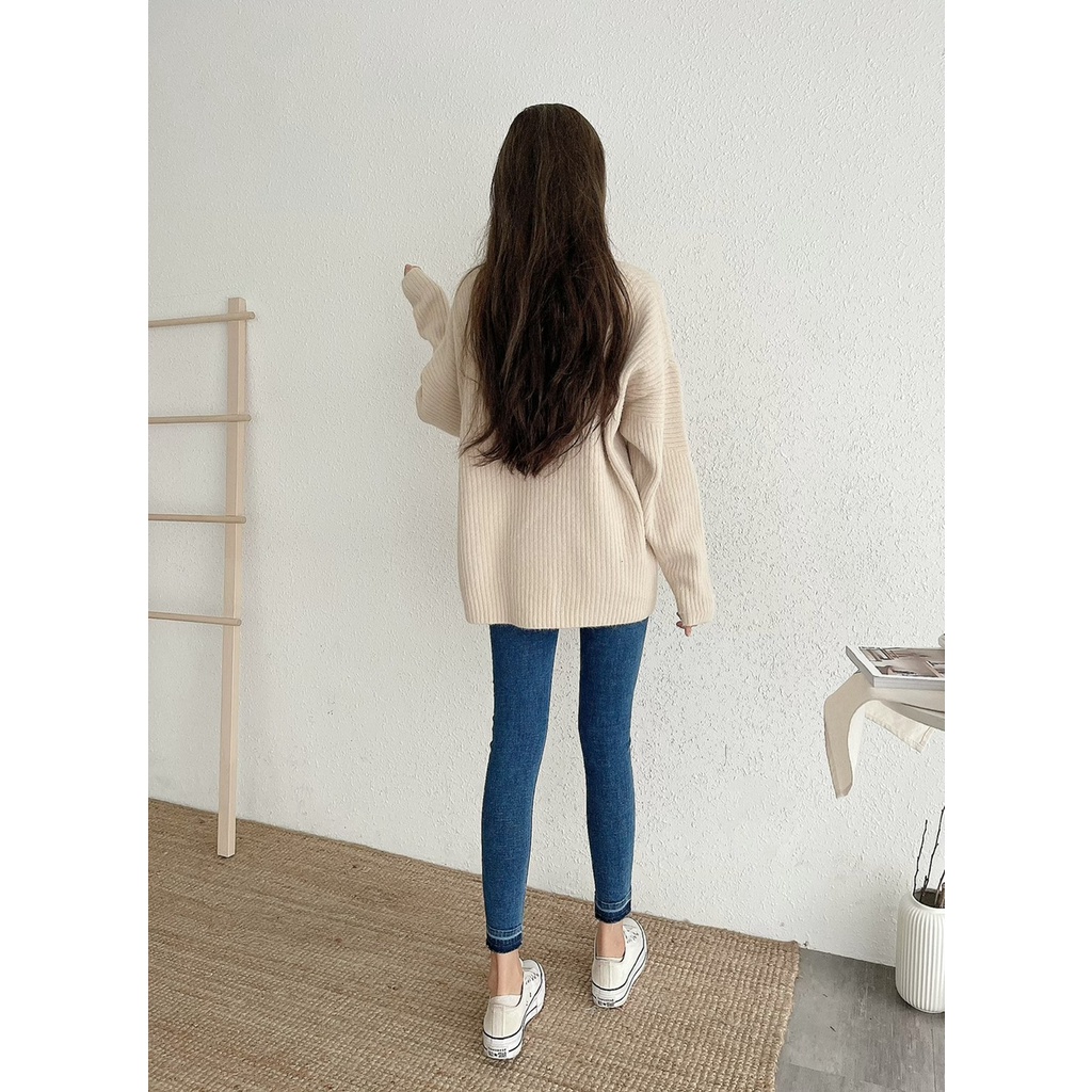 🔥10.27直播新品]💥褲腳有亮點]🇰🇷正韓中高腰內鬆緊腰超彈顯瘦褲腳漸層合身牛仔褲(S-3XL)