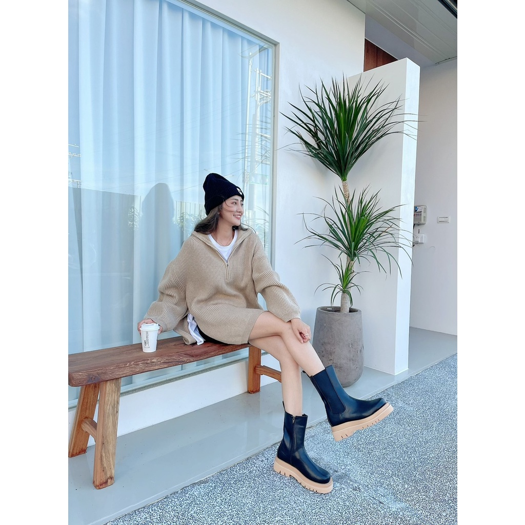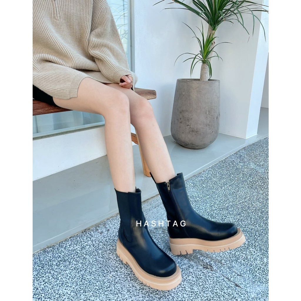 🔥10.27直播新品]💥3.0穿上比例變超好]🇰🇷正韓超好走百搭側拉鍊皮革厚底中筒靴(22.5-25/三色)
