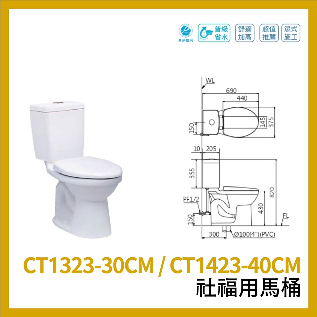 〖Caesar 凱撒衛浴〗社福用馬桶 CT1323-30CM CT1423-40CM 奈米抗菌 (保固一年)【鋐欣】