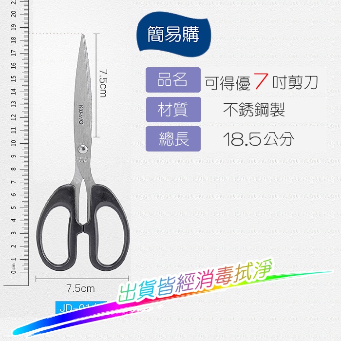 簡易購 現貨供應 剪刀 可得優 剪紙刀 辦公用品 7吋 8吋 學生剪刀 辦公剪刀 切割 裁切 剪紙 文具用品