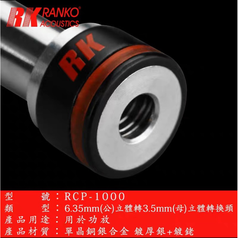 RANKO龍格RCP-1000 6.3轉3.5轉換頭6.35大三芯公轉3.5母轉接頭鍍銠