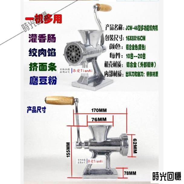 多功能鋁合金手動絞肉機、家用灌腸機JCW-46型碎肉機碎菜機攪辣椒、家用灌腸機多功能絞肉機 時光