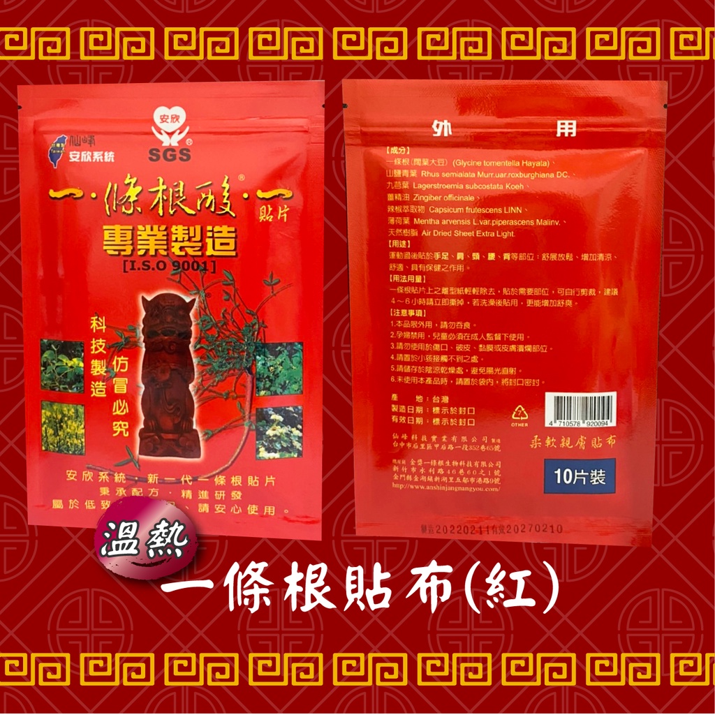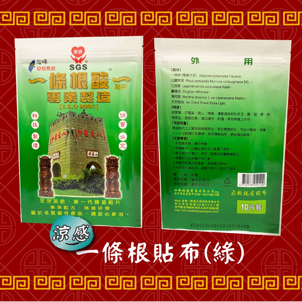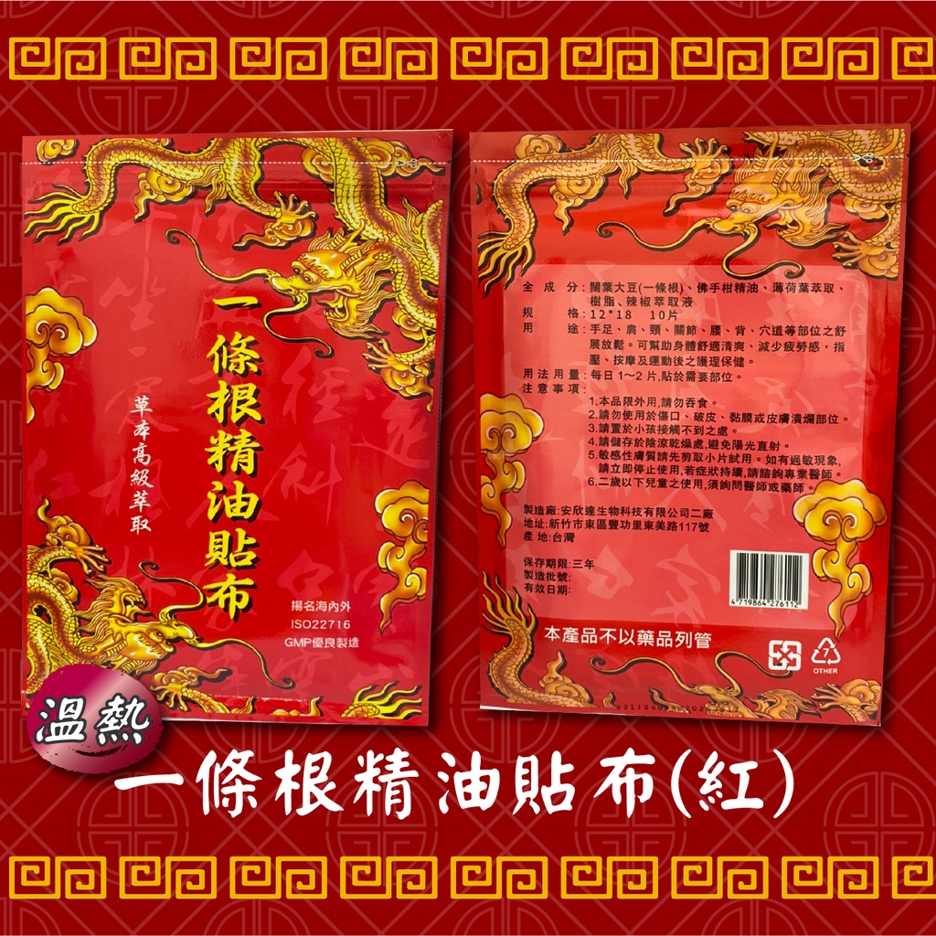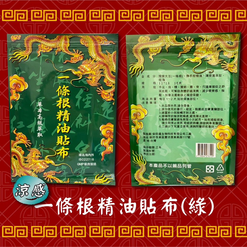 『現貨 免運 台灣製造』一條根貼布 酸痛貼布 一條根精油貼布 10入 舒緩貼布 精油貼布 冰涼貼布 溫熱貼布 一條根貼布