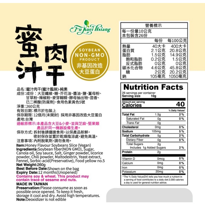 【今晚饗吃】團購明星商品【富貴香】蜜汁素肉乾(純素)260g