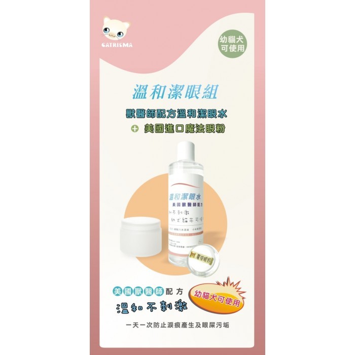 貓主意溫和眼部照護5件組免運費~ 溫和潔眼水2罐+eye envy眼粉+專用棉+小刷子 扁臉貓必備