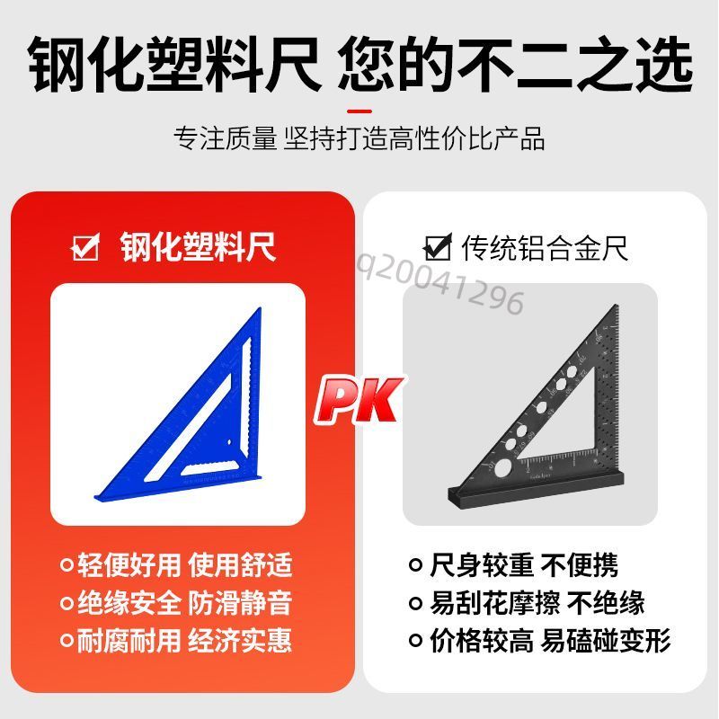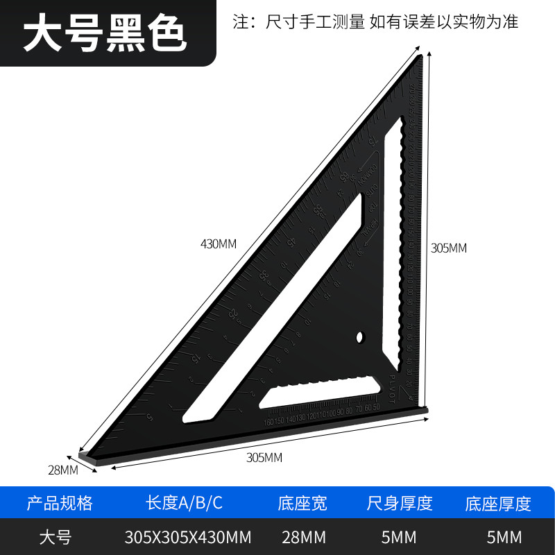 【臺灣出貨】高精準鋼化塑料三角尺多功能90度直角45度角尺高精度木工裝修專用 品質保證