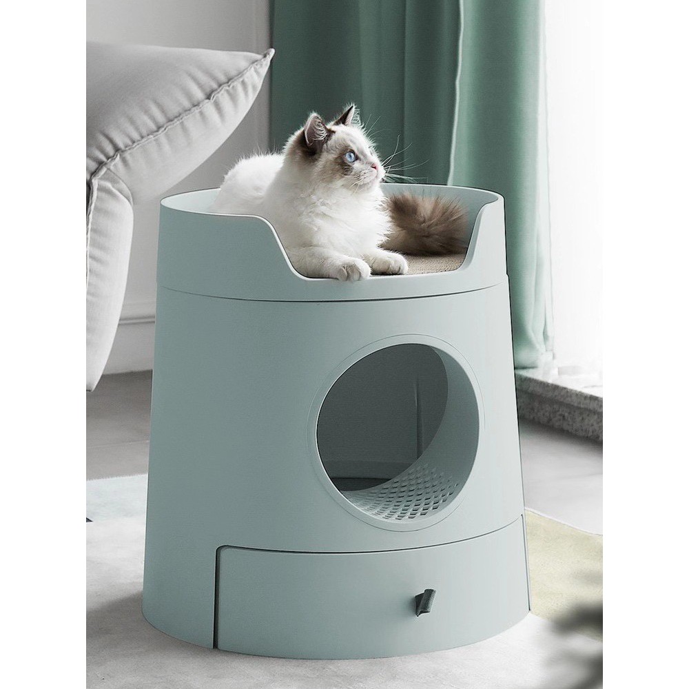 🔥台灣現貨 免運送到家🔥城堡貓砂盆 貓砂盆 防落砂 貓廁所 全封閉式 抽屜式 城堡 附貓抓板 貓窩