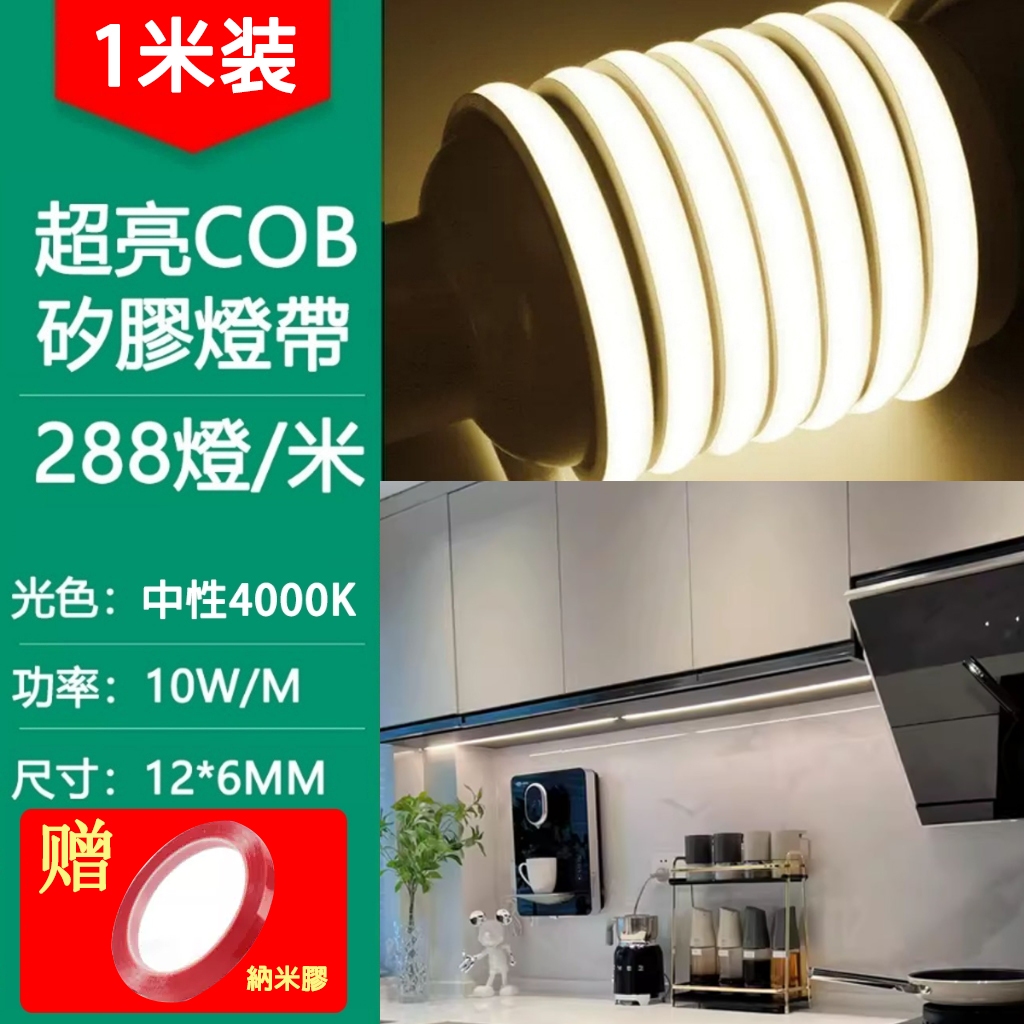 現貨 110V插電式廚房吊櫃下燈帶 LED燈條自粘櫥櫃切菜補光照明燈條 25CM可剪 不見燈珠 長條櫃亮化COB高亮燈條