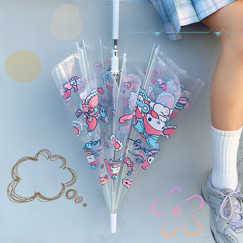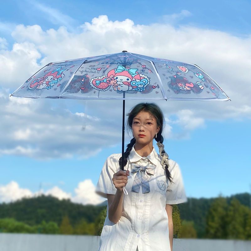 ☄【🌂限時折扣】 抖音同款美樂蒂折疊透明雨傘 三折便攜自動傘 小清新網紅ins少女 摺曡傘 輕便傘