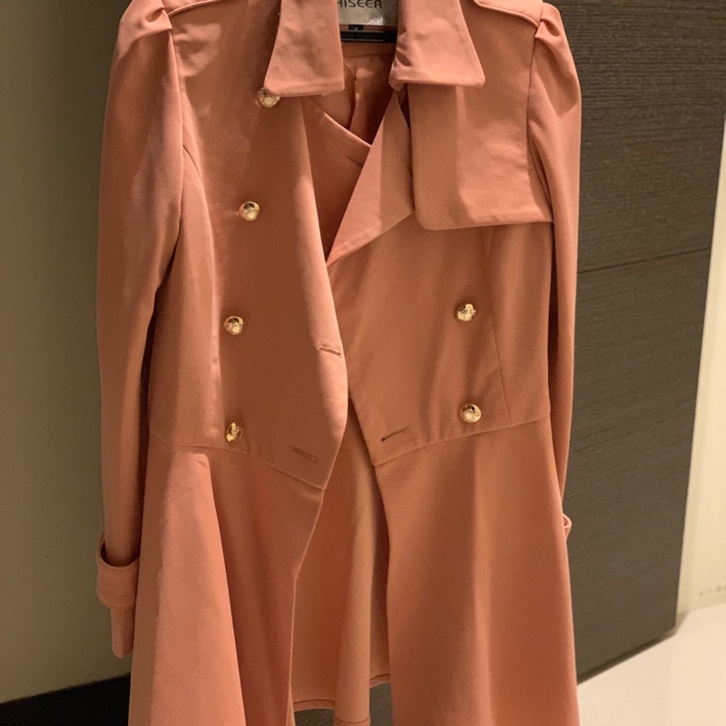 又青款挺版粉色質感風衣外套