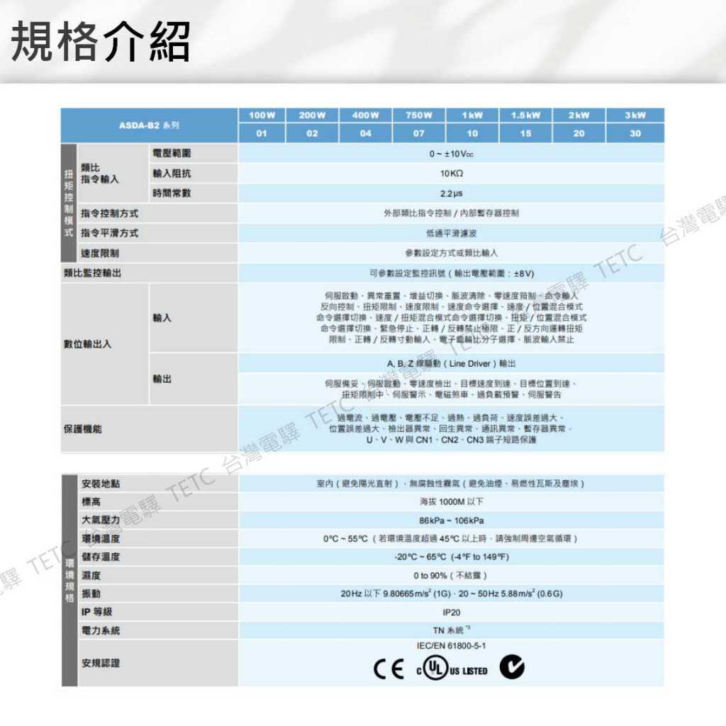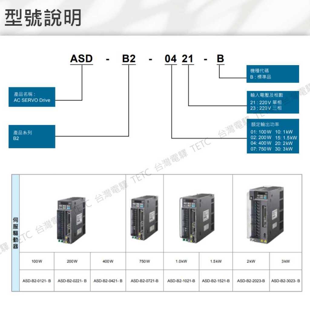 【8H快速出貨】台達電DELTA 伺服驅動器 ASDA-B2 100/200/400/750W 1/1.5/2kW公司貨