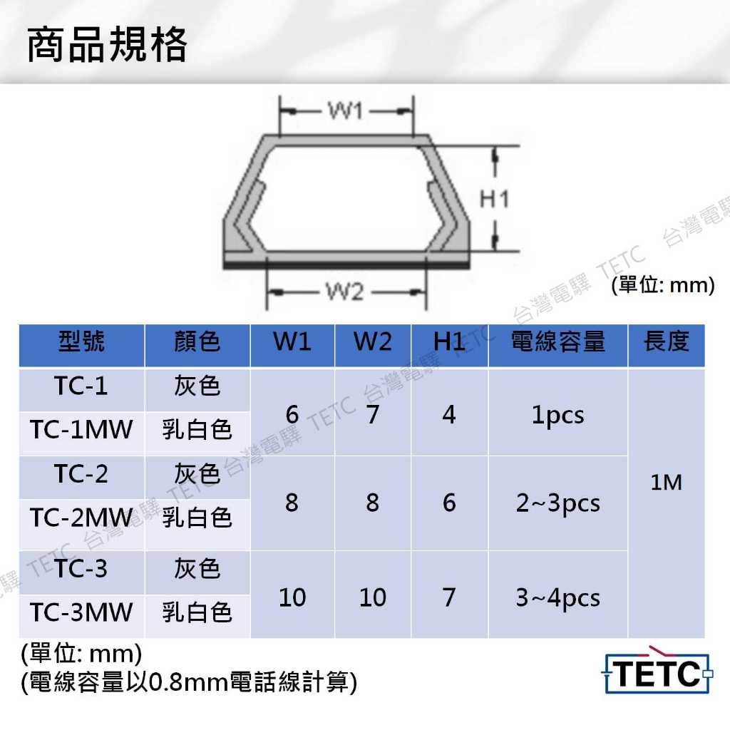 【8H出貨安心價】KSS凱士士 TC系列(UL認證) 電話配線槽壓條/壓線槽 槽底有雙面膠 1M TC-1~8 灰/乳白