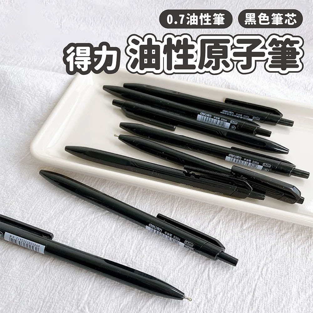 得力deli 0.7 黑筆桿 油性原子筆 黑色筆芯 S304【小女子】