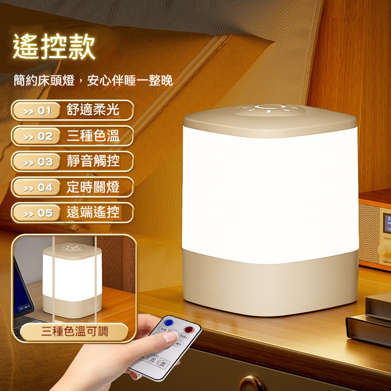 【歐德沐】智能聲控小夜燈 床頭燈 觸控台燈 桌面氛圍燈 智能閱讀燈 三種色溫 靜音觸控 定時關燈 時間顯示