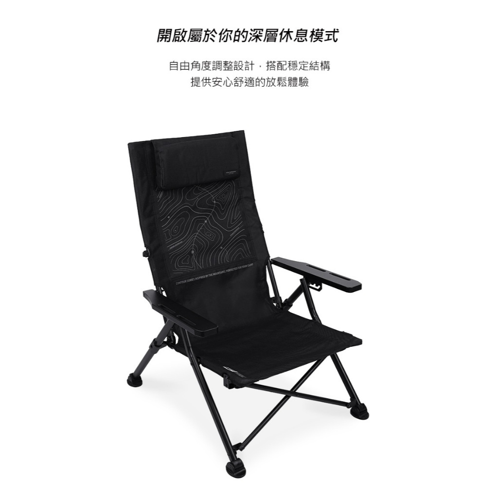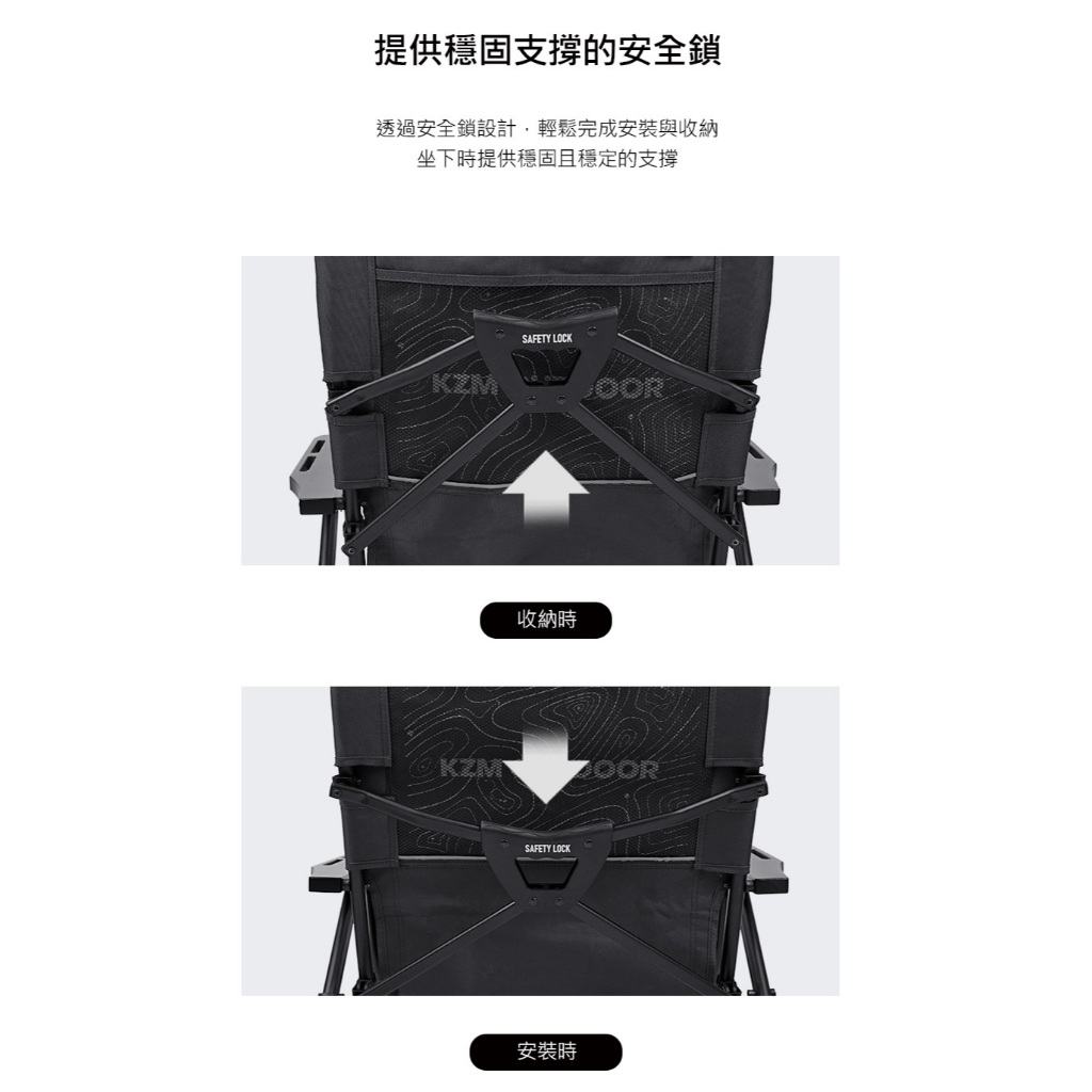 KAZMI KZM 曲線四段低座高背折疊椅 黑/灰【野外營】露營椅 休閒椅 椅子 高背椅