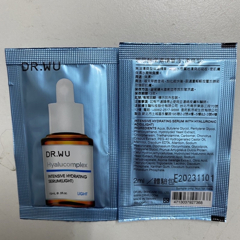 Dr.Wu 達爾膚玻尿酸保濕精華液(清爽/保濕)/保濕精華乳/保濕精華化妝水(清爽/保濕/保濕精華霜/保濕水凝露。試用包