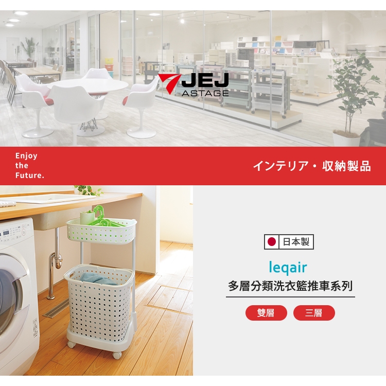 【日本JEJ ASTAGE】leqair 日製雙層分類洗衣籃推車-DIY-多色可選