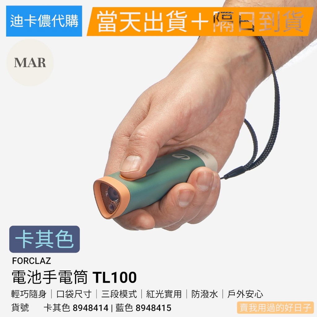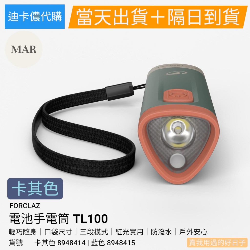 【全新迪卡儂代購】FORCLAZ 手電筒 TL100 100流明|露營登山照明|三段模式 登山手電筒 100流明手電筒