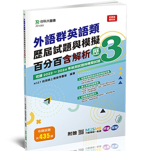 【台科大圖書】統測歷屆試題|外語群英語類歷屆試題與模擬百分百含解析 – 歷3【89折】