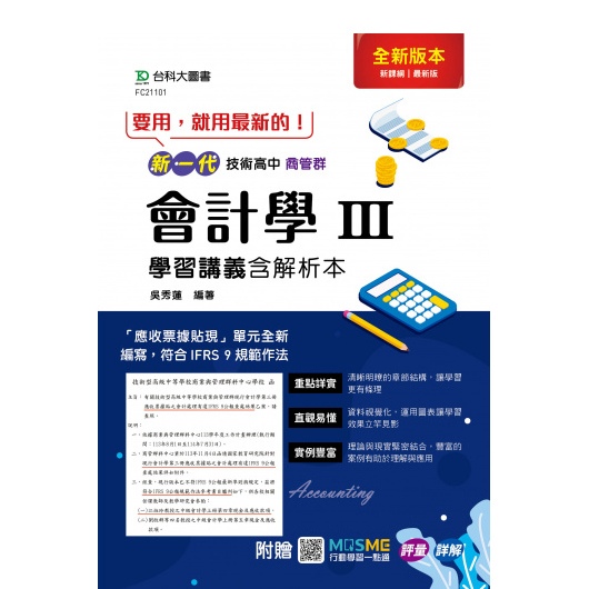 【台科大圖書】《新一代 技術高中商管群會計學 III 學習講義含解析本 - 最新版(第二版)》_【89折】
