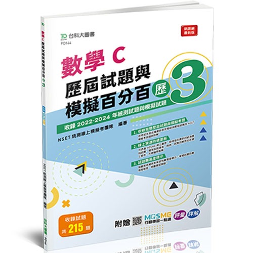 【台科大圖書】統測歷屆試題|數學C歷屆試題與模擬百分百 – 歷3【89折】