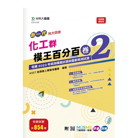 【台科大圖書】統測歷屆試題|新一代 科大四技 化工群模王百分百 – 卷2 【89折】