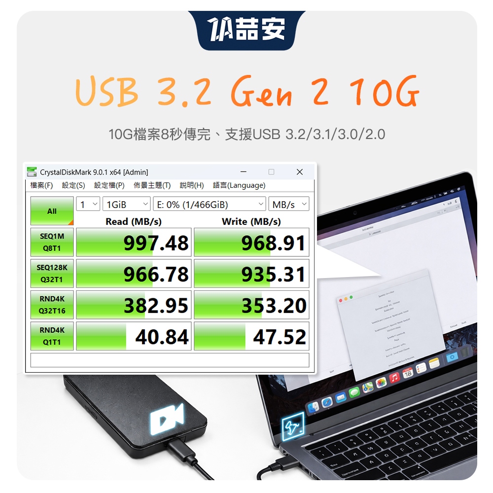 【ZA 喆安】USB3.2 Gen2 10G Type-C高速充電傳輸線 適用蘋果iPhone/手機/平板/筆電/硬碟