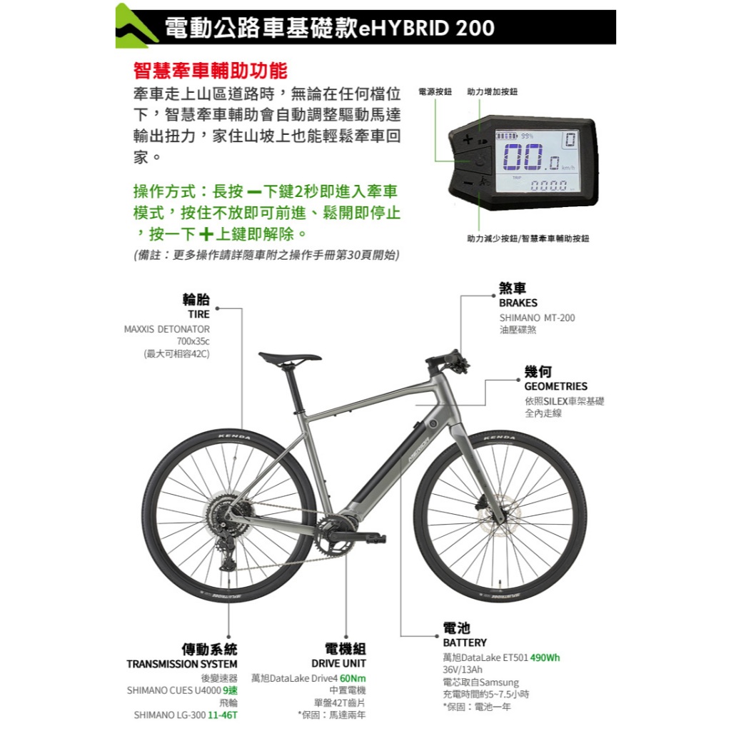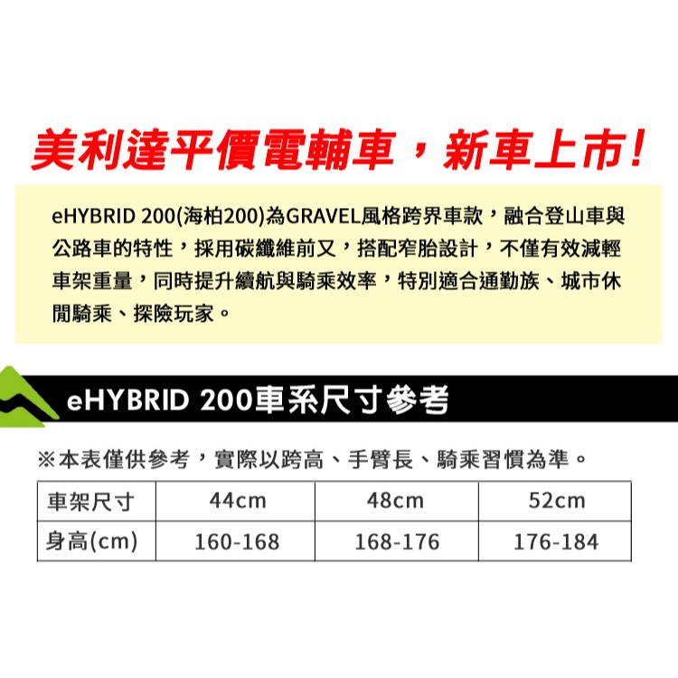 《MERIDA》eHYBRID 200 (海柏200) 美利達電動輔助公路車 B5 (E-BIKE/平價電動車/電輔車)