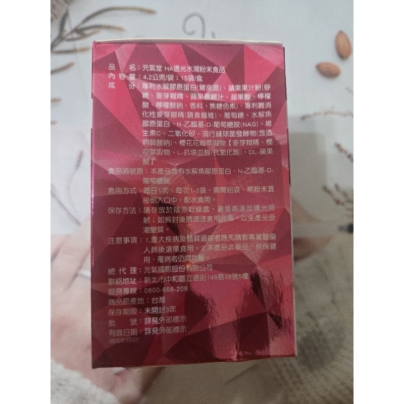 💞開發票💞元氣堂 HA透光水潤膠原蛋白粉15袋/盒
