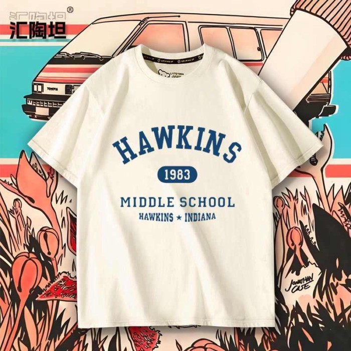 免運 怪奇物語 Hawkins霍金斯 周邊美式T恤 短袖T恤 短袖上衣 美劇周邊T恤 英文簡約T恤 休閒寬鬆T恤