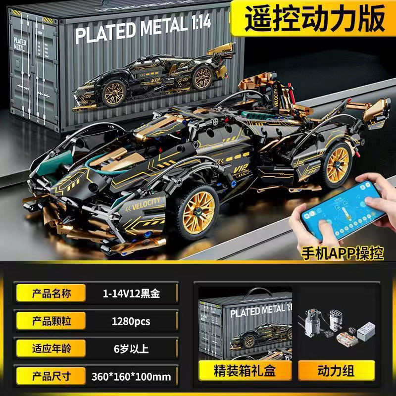 台灣發貨✨ 蘭博基尼V12黑武士遙控童車拚裝積木6嵗以上生日玩具