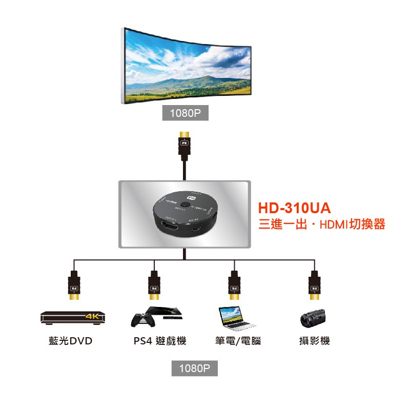 【PX大通官方】HD-310UA HDMI切換器 3入1出