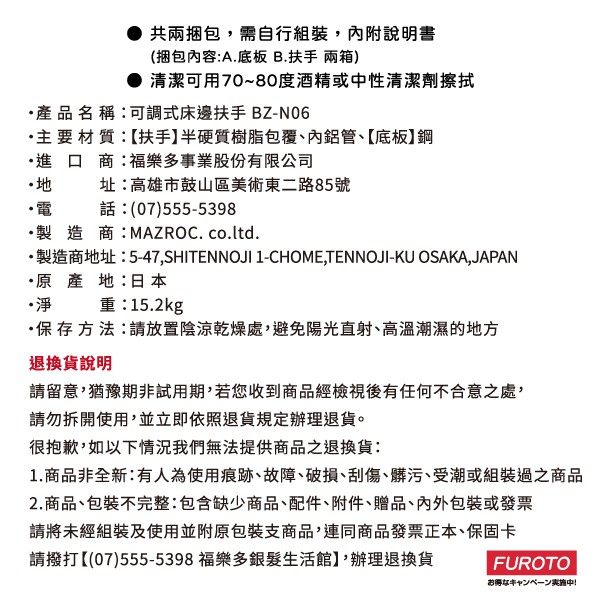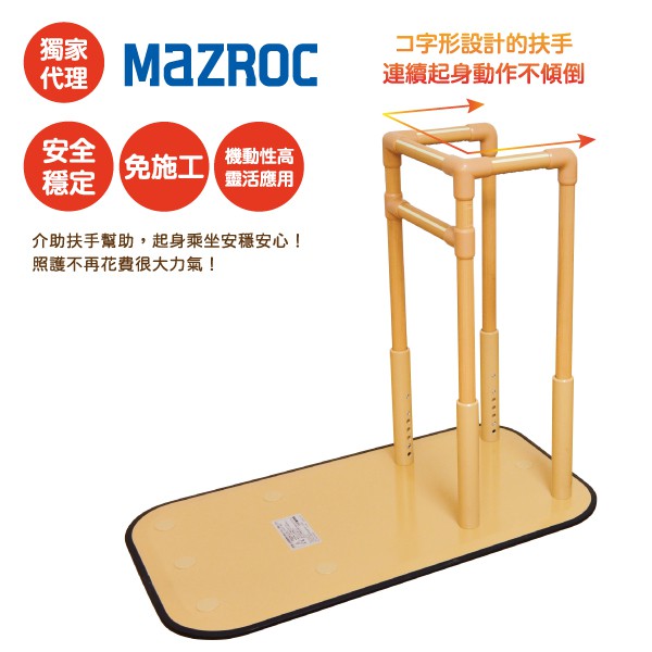 【MAZROC】松六 ㄇ字型床邊扶手 協助起身|送固定加強腳 高度可調整 安全穩固 支撐起床拉力 連續動作不傾倒 福樂多