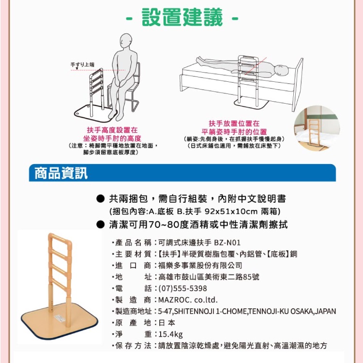 松六 協助起身扶手 扶手架|送延伸扶手 協助從椅子沙發起身 免施工 床邊扶手 機動性高 高度可調 日本製 福樂多