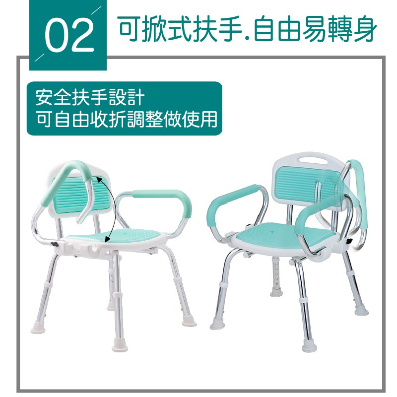 扶手可掀式軟墊洗澡椅