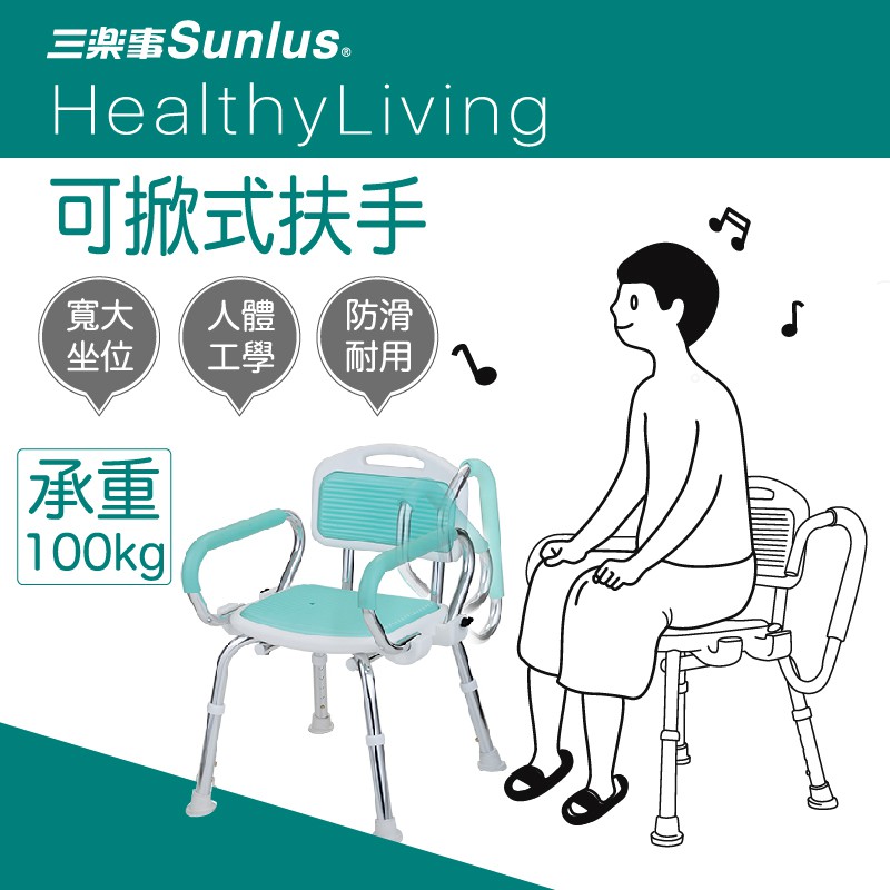 Sunlus 三樂事 扶手可掀式軟墊洗澡椅 SP5605|長照補助洗澡椅 沐浴椅 福樂多