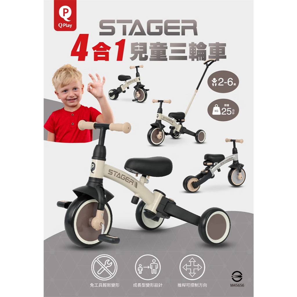 《Q PLAY》STAGER四合一兒童三輪車(棕/綠/黑金)