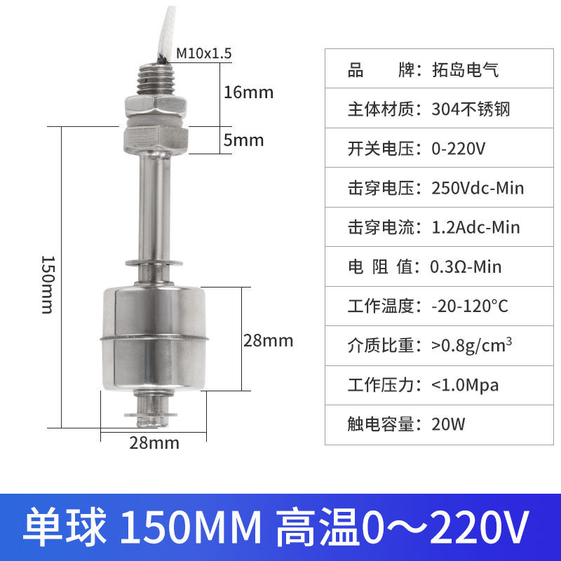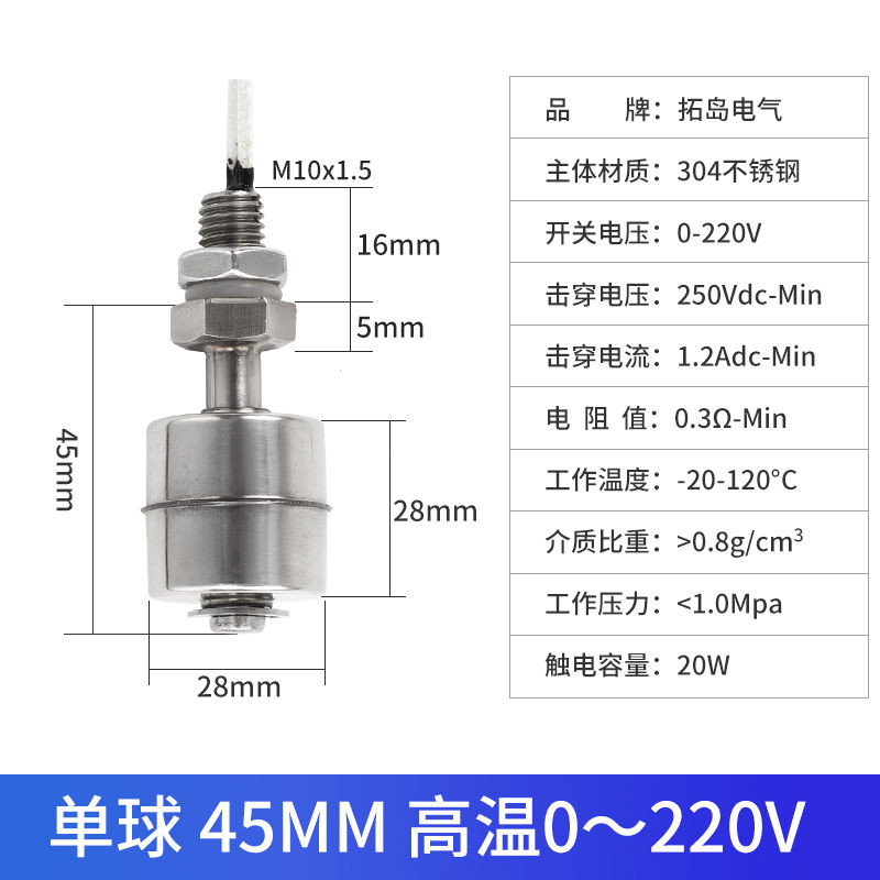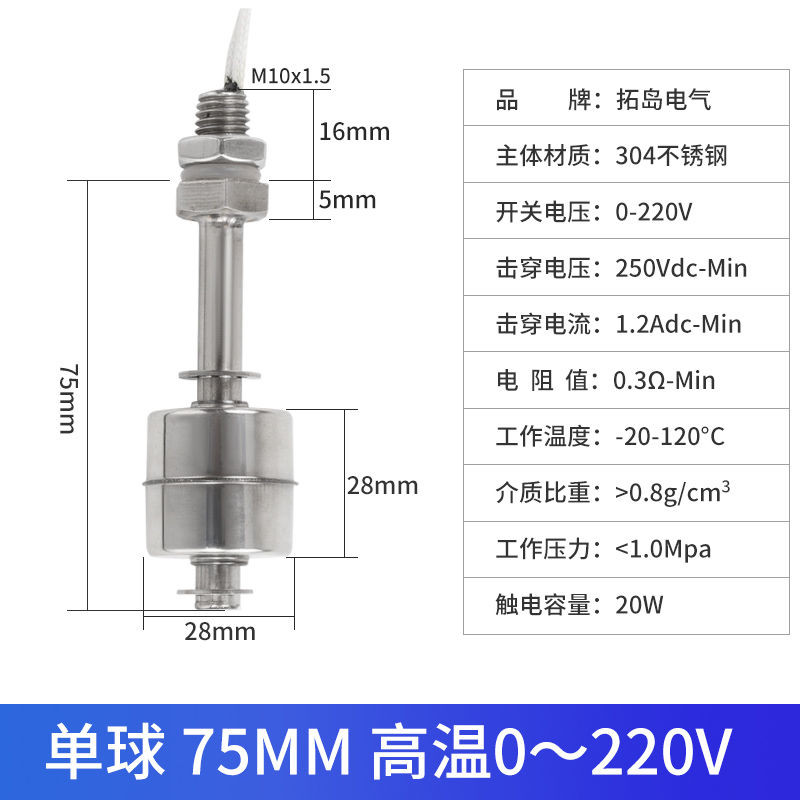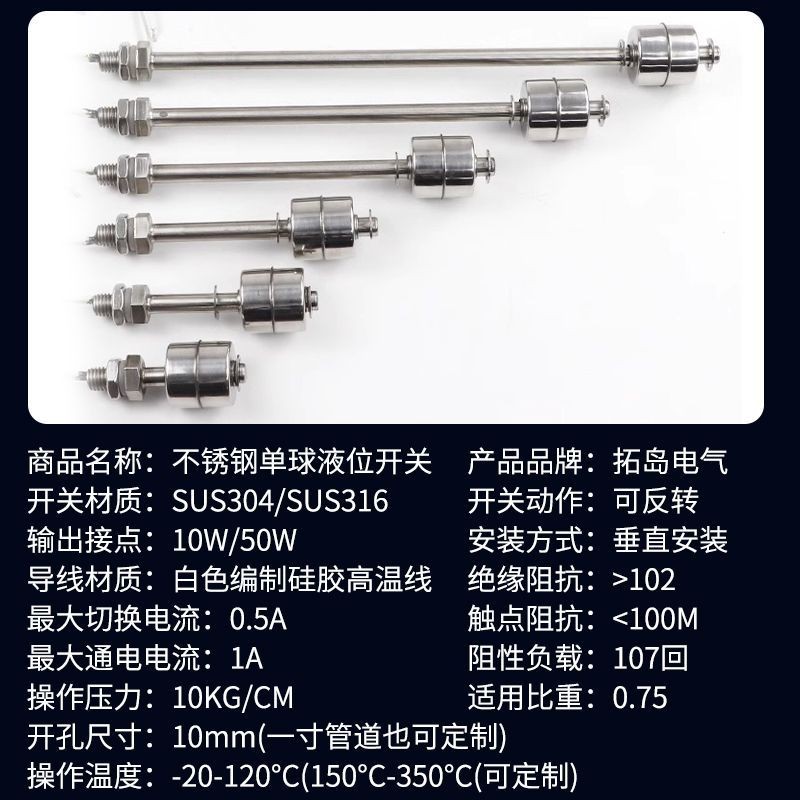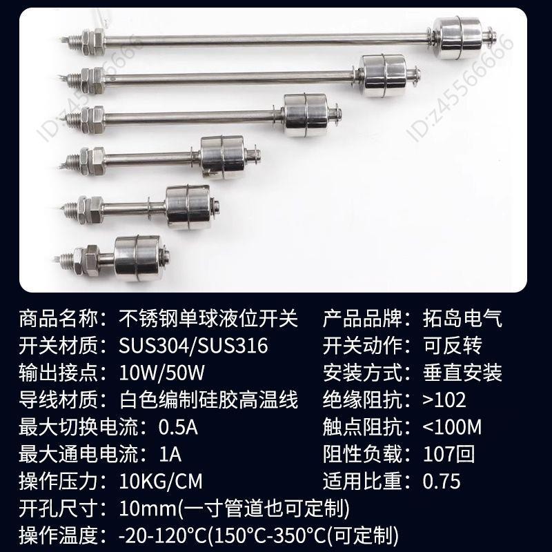 ⭐考拉⭐高溫304不銹鋼浮球開關水位開關液位傳感器水位控制器水箱報警dhjkkl