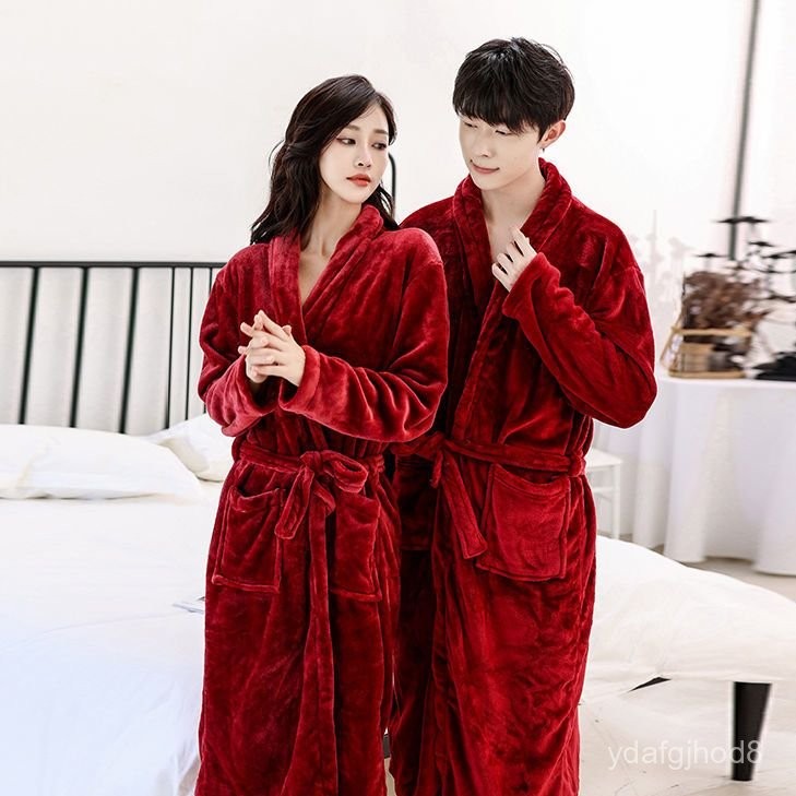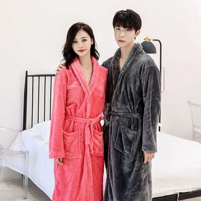 2025新款🌈加厚睡袍秋冬季法蘭絨情侶浴袍珊瑚絨一體式睡衣長袖男士女士浴衣 7VFR
