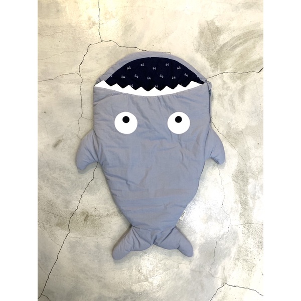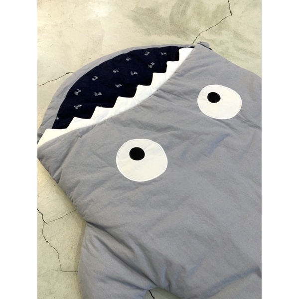 西班牙BabyBites 鯊魚咬一口 輕量版 純棉手工 嬰兒睡袋 防踢被 包巾 湛灰藍